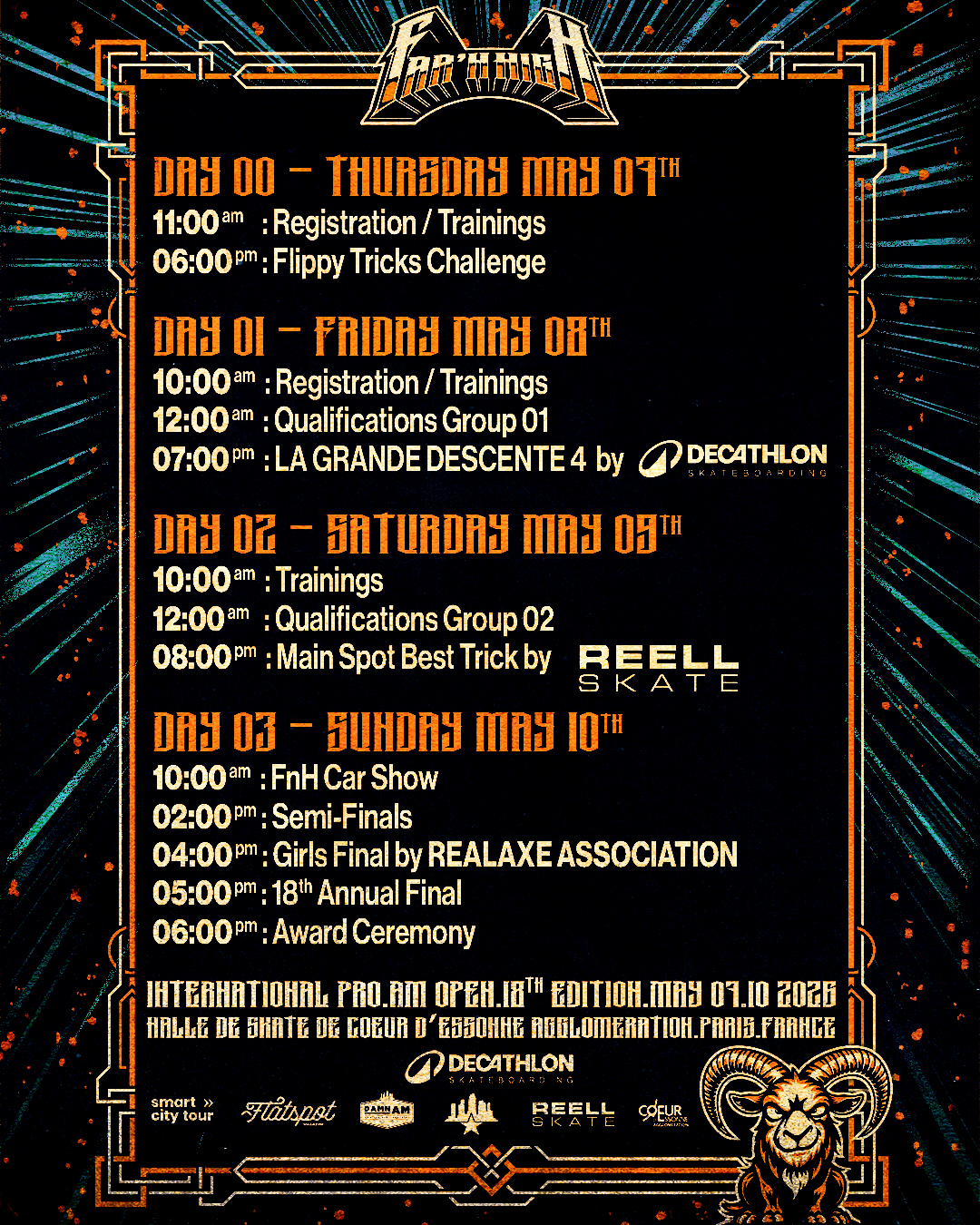- 20h : Démonstration des meilleures figures organisée par Reell Skate